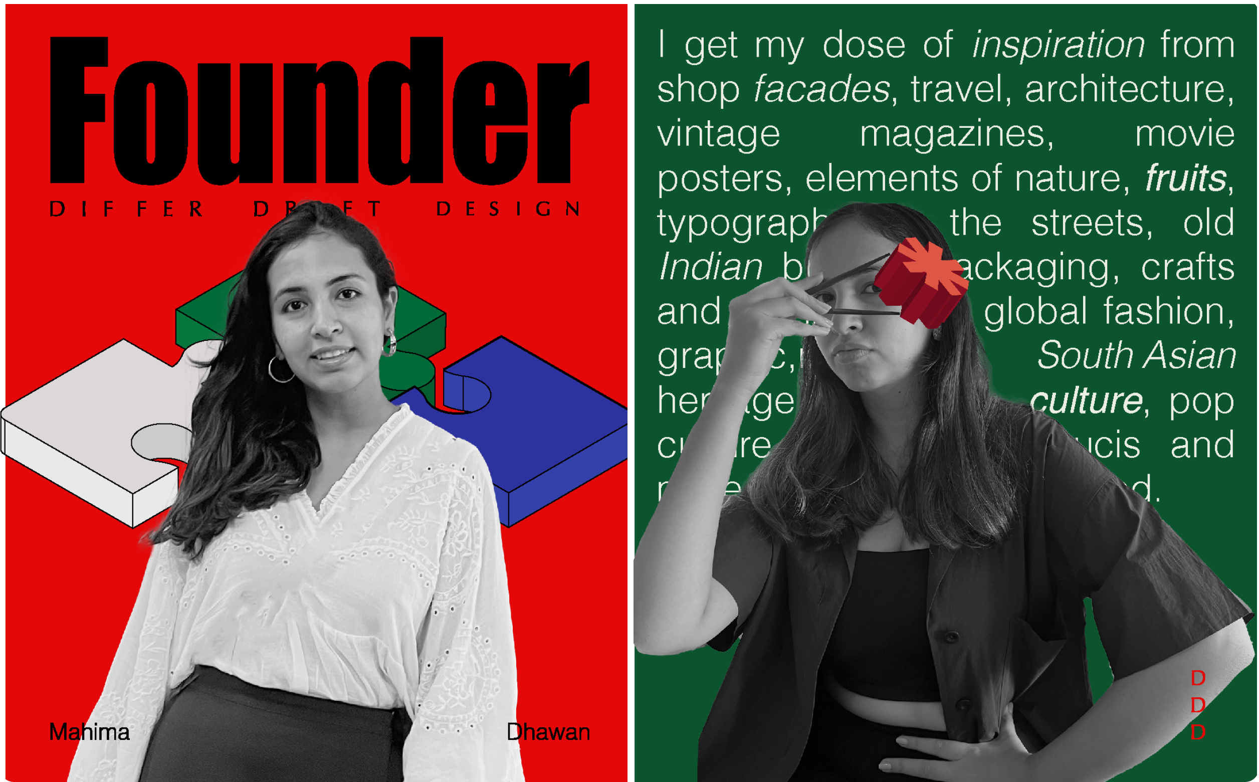 Differ Draft Design (DDD) is a multi-disciplinary, independently-owned design studio based in New Delhi, India. DDD was recently founded in early 2022 by Mahima Dhawan with a purpose of creating a minimalistic visual narrative that speaks to people in the most impactful way. Our work encompasses brand identity design, print and packaging design, website and digital experiences.
